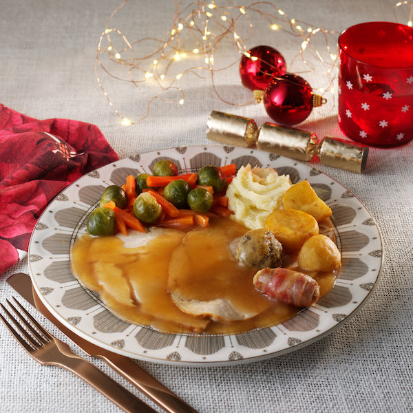 The centrepiece is traditionally a roast turkey, stuffed and served with cranberry sauce (or gravy, or bread sauce) and.